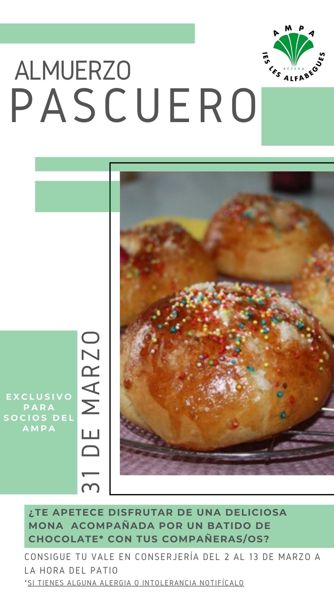 💡Adquiere el vale durante los días 20, 21 y 22 de marzo en conserjería, es imprescindible para disfrutar de la mona el día 27.